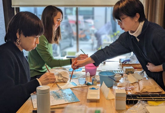 「敷居が高く感じてしまう」「そもそも接点がない」という日本画に触れる機会を、オープンアトリエという形で街にひらいていく。多くの方にとって初めての体験として楽しみながら、画材に触れ、その奥にある日本固有の美意識に触れていく。昨年1年間かけて実施したモニター体験を通して、磨き上げたプログラムに手応えを感じています。
