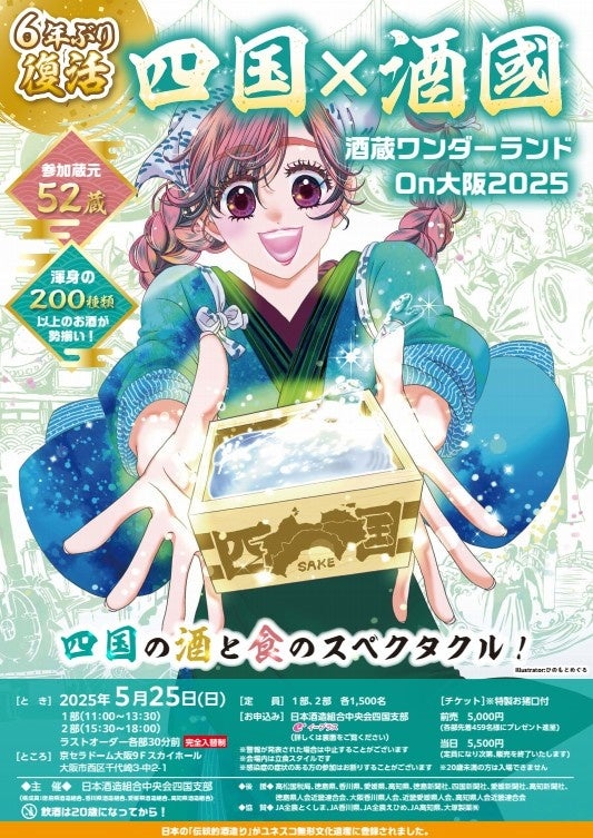 2025年5月25日(日)、京セラドーム大阪9階スカイホールにて、日本酒イベント「四国×酒国2025 酒造ワンダーランドOn大阪」を6年ぶりに開催いたします。