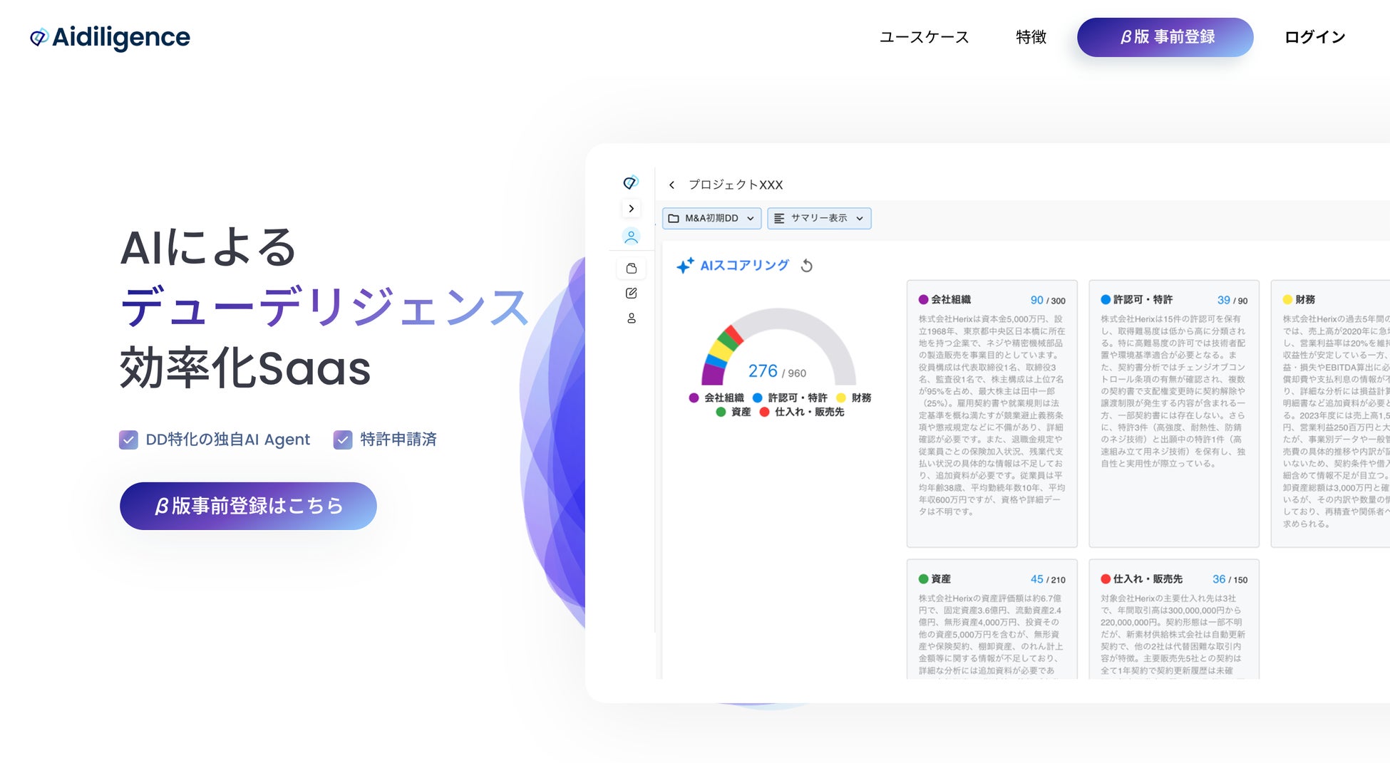 AI でデューデリジェンスを効率化するAI Saas「Aidiligence」、β版の事前登録を開始