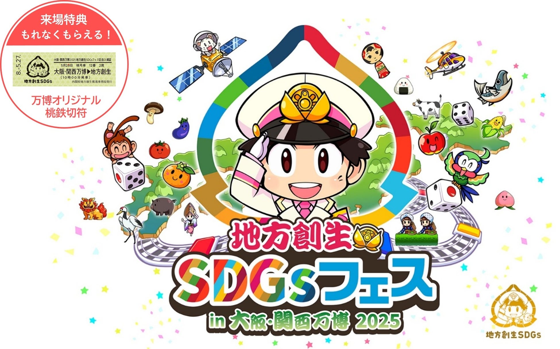 内閣府地方創生推進室において、株式会社コナミデジタルエンタテインメント(以下、KONAMI)と連携して「地方創生SDGsフェス」(2025年5月28日(水)~6月1日(日)@大阪・関西万博EXPOメッセ[WASSE])を開催します。KONAMIの国民的人気ボードゲーム「桃太郎電鉄」のコンテンツを活用し、誰でも楽しく地方創生SDGsを知り、学ぶことができる5日間のイベントです。