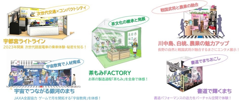 会場内では、地方創生SDGsの取り組みを基軸として、全国38地域の特色を体験・体感できる魅力的なブースが展開されます。次世代型交通LRTやJAXA協力による宇宙教育、お茶文化の体験等、各ブースではバラエティ豊かなコンテンツをご用意しております!また地方創生SDGsに取り組む全国の鉄道会社紹介エリアも登場!全国の大小約14の鉄道会社の取り組みを紹介します!