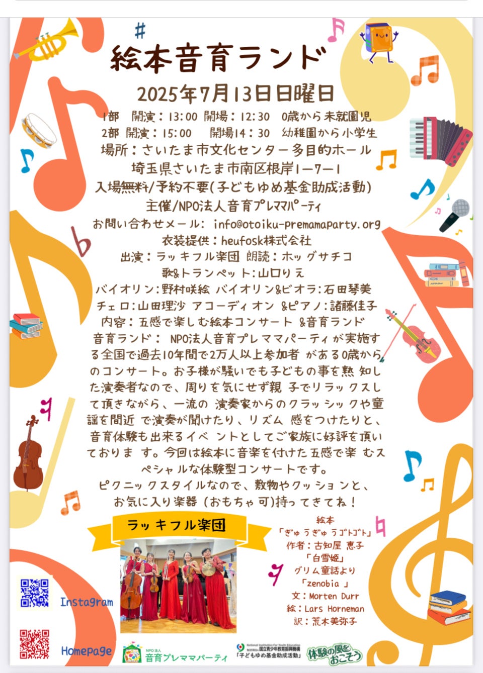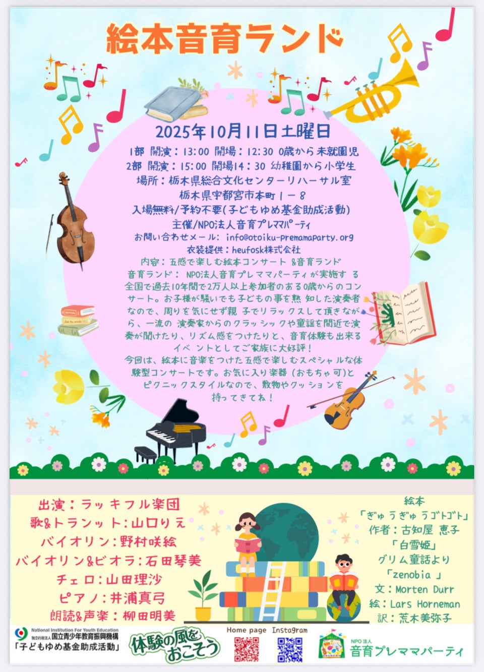 2025年開催!子育て支援と文化振興を目的とした関東信越規模の絵本と音楽の体験イベント「音育ランド」~経済格差を超え、すべての子どもたちに平等な文化体験を~