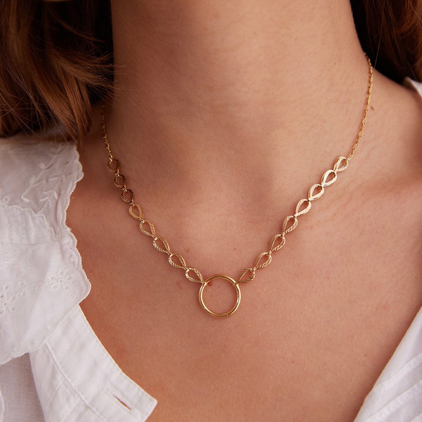 「LOU」ネックレスは、シンプルなサークルモチーフが首元で優雅に揺れ、女性らしさを引き立てます。繊細なチェーンは肌に優しく馴染み、デイリーからフォーマルまで幅広く活躍します。