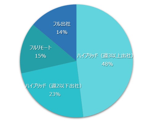 約7割の案件でハイブリッド勤務(リモートとクライアント先への出社併用)が採用されていました。多くのプロジェクトで柔軟な勤務体制が認められており、完全リモート可能な案件も一定数存在しています。コロナ禍を経て定着したリモートワークと、対面での連携を組み合わせるハイブリッド型がフリーコンサル業界でも主流となっている実態が確認できました。