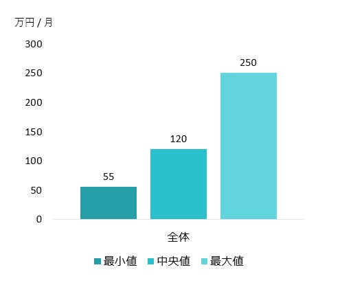 月額単価の平均を比較したところ、案件全体の平均単価が約120万円/月という水準であることが分かりました。戦略立案や新規事業支援などハイエンドなコンサルティング領域で高い報酬傾向が見られ、IT系や業務系の案件もそれに次ぐ水準となっています。フリーランスコンサルタントにとって、自身の専門分野による収入差を把握する指標となります。