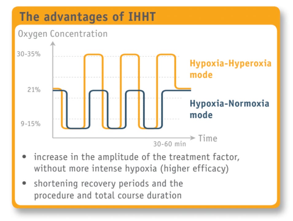 継続的な低酸素状態は身体にとって有害となる可能性がありますが、IHHTは酸素濃度と時間を厳密に制御することで、安全性と効果の両立を実現しています。