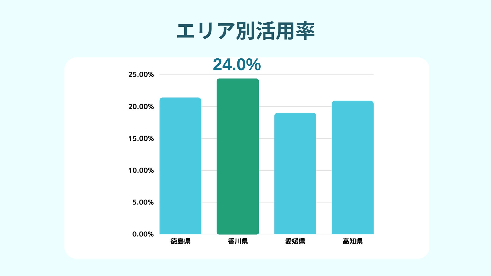 ・エリア別では香川県の利用率が最も高い傾向で、4県で4~5ptの差が見られる。