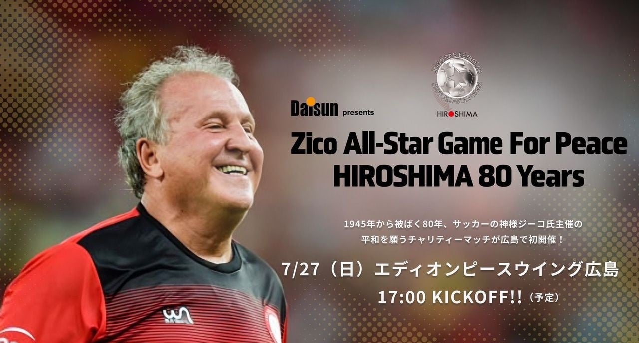 Zico All-Star Game For Peace HIROSHIMA 80 Years製作委員会(幹事会社:株式会社WealthTech Holdings 代表取締役 福井元明)は、平和を願う国際チャリティーマッチ「Zico All-Star Game For Peace HIROSHIMA 80 Years」(以下 本イベント)を、2025年7月27日(日)にエディオンピースウイング広島にて開催いたします。