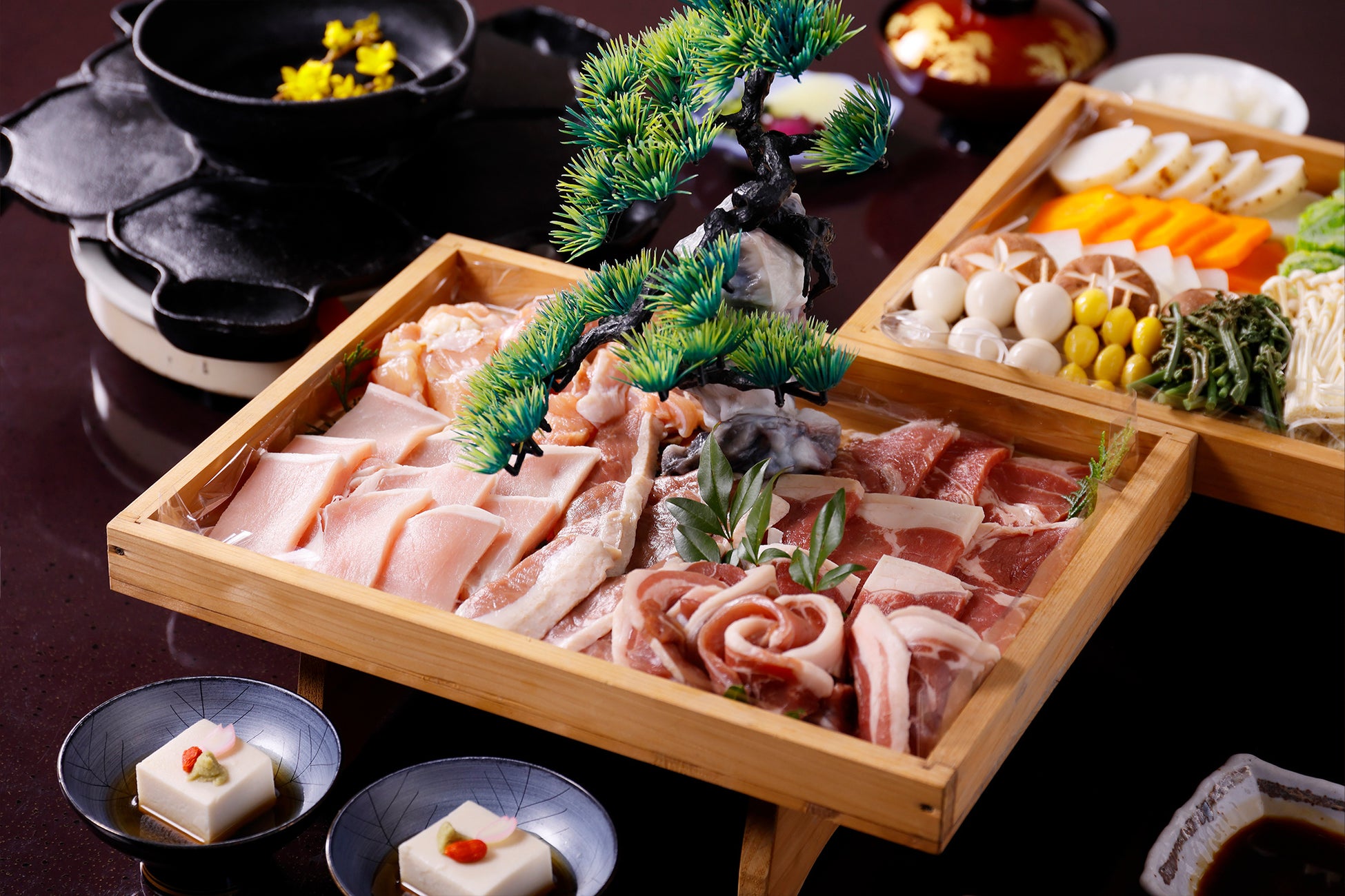 多武峰観光ホテルが誇る名物料理で、大和名物料理百選第1位に3度も選出された逸品。5 種類のお肉(牛・豚・鶏・鴨・猪)の鉄板焼きと、山の幸の水炊きを、秘伝のタレでご賞味いただきます。天下の名将源義経公と、多武峰・南院藤室寺のご住職十字坊の友情が生み出した由来があり、歴史浪漫も合わせてお楽しみください。お肉のボリュームに多くのお客様が驚かれますが、あっさりした水炊きも一緒にお召し上がりいただきますので、美味しく完食できたとのお声をいただいております。