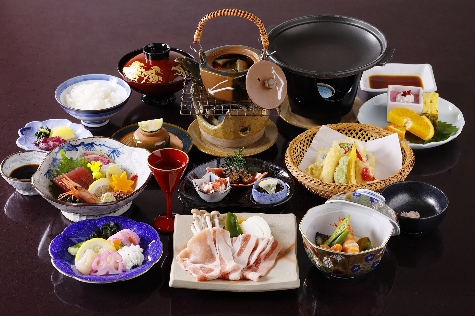 ②夕食:名物「義経鍋」スタンダードコース(3日前までのご連絡でヤマトポーク付き会席に変更可能/18:00~20:00)