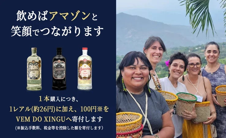 1本ボトルが売れるごとに約126円※をアマゾン熱帯雨林の文化や自然を守り育むNGO団体 Vem do Xingu(ヴェムドゥ・ジング)に寄付します。寄付は、アマゾン熱帯雨林900万ヘクタールに広がる総勢3045名からなる14の現地コミュニティを結びつける”キャンティーン(交換所)”の運営に利用します。