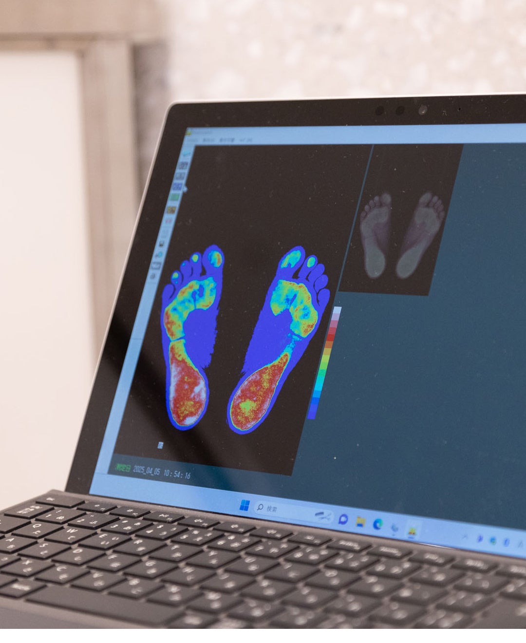 AI姿勢分析「Posen(ポーズン)」と足裏測定「FootLook(フットルック)」で、現在のあなたの姿勢を徹底的に可視化。 専門家が、靴選びから身体の動かし方までを統合的にアドバイス。一生役立つセルフメンテナンス法が身につきます。 個々のニーズに合わせた姿勢サポートグッズもご用意しています。