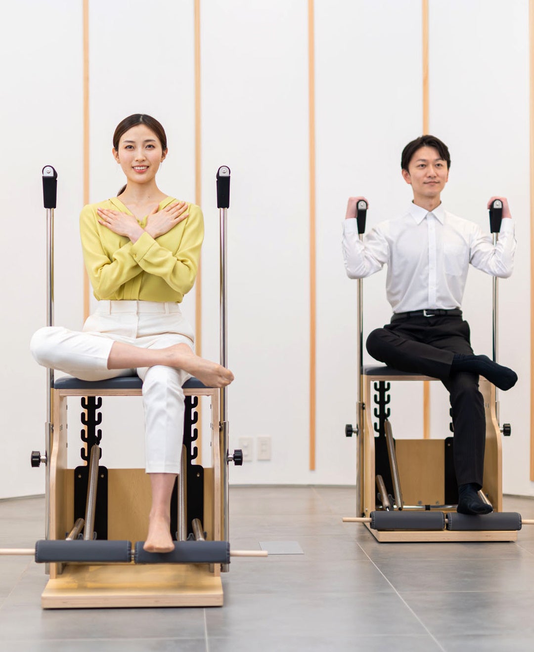 スタジオにはピラティスチェアを設置。お仕事の合間や帰り道に、普段着のまま1回15分からエクササイズが可能です。 短時間で効率的に姿勢改善を目指すことができるため、忙しいビジネスパーソンにも最適です。