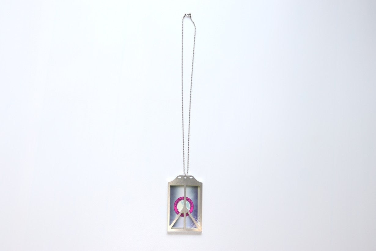 背面にはピースマークをデザインしています。カードを入れずとも、シンプルでおしゃれなアクセサリーとして楽しめます。ピースマークは平和や反戦のシンボルとしても知られ、ファッションアイコンとしても人気のデザインです。