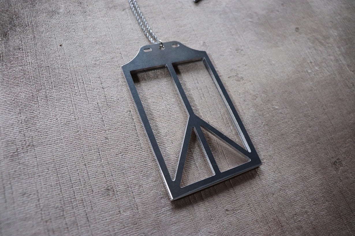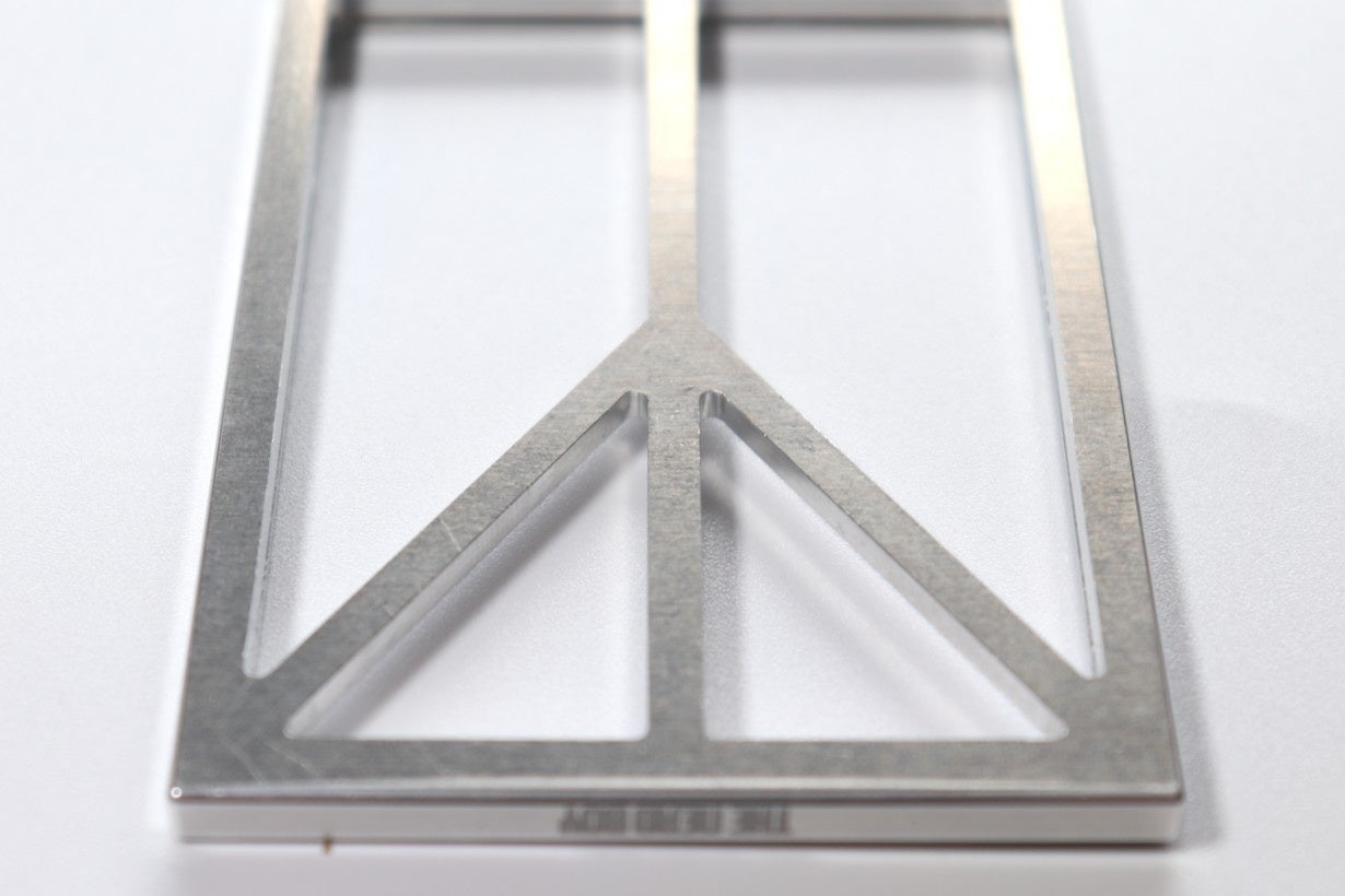 このトレカネックレスは、一枚のジェラルミンから削り出す一体成型により作られています。