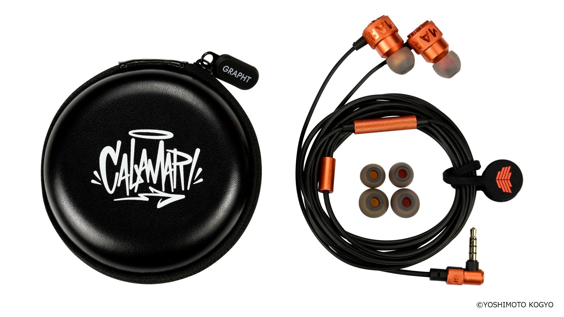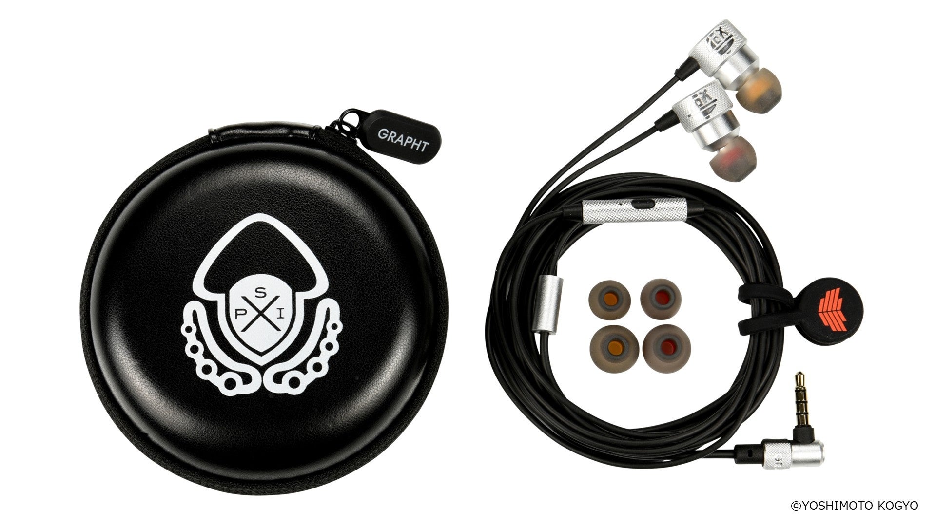 本製品は、「よしもとゲーミング」シューティング部門所属のくろすっω・)つ、あとばる、ぴょん、にしざわ学園の4名によるチーム「よしもとゲーミング カラマリ」(以下 カラマリ)と、ダイナモン、メロンによる「SPIX」の計6名がサウンドとデザインの監修を担当しています。GRAPHTイヤホン『THE SHOOTER』のサウンド設計をベースに、6名の選手と共同で、特徴的かつ重要な効果音の聴き取りやすさを追求したオリジナルイヤホンです。『CALAMARI Edition』はチームカラーのオレンジ、『SPIX Edition』はシルバーでイヤホン全体を統一し、各所に「カラマリ」や「SPIX」のマークやロゴをあしらったコラボレーションならではの特別モデルとなっています。