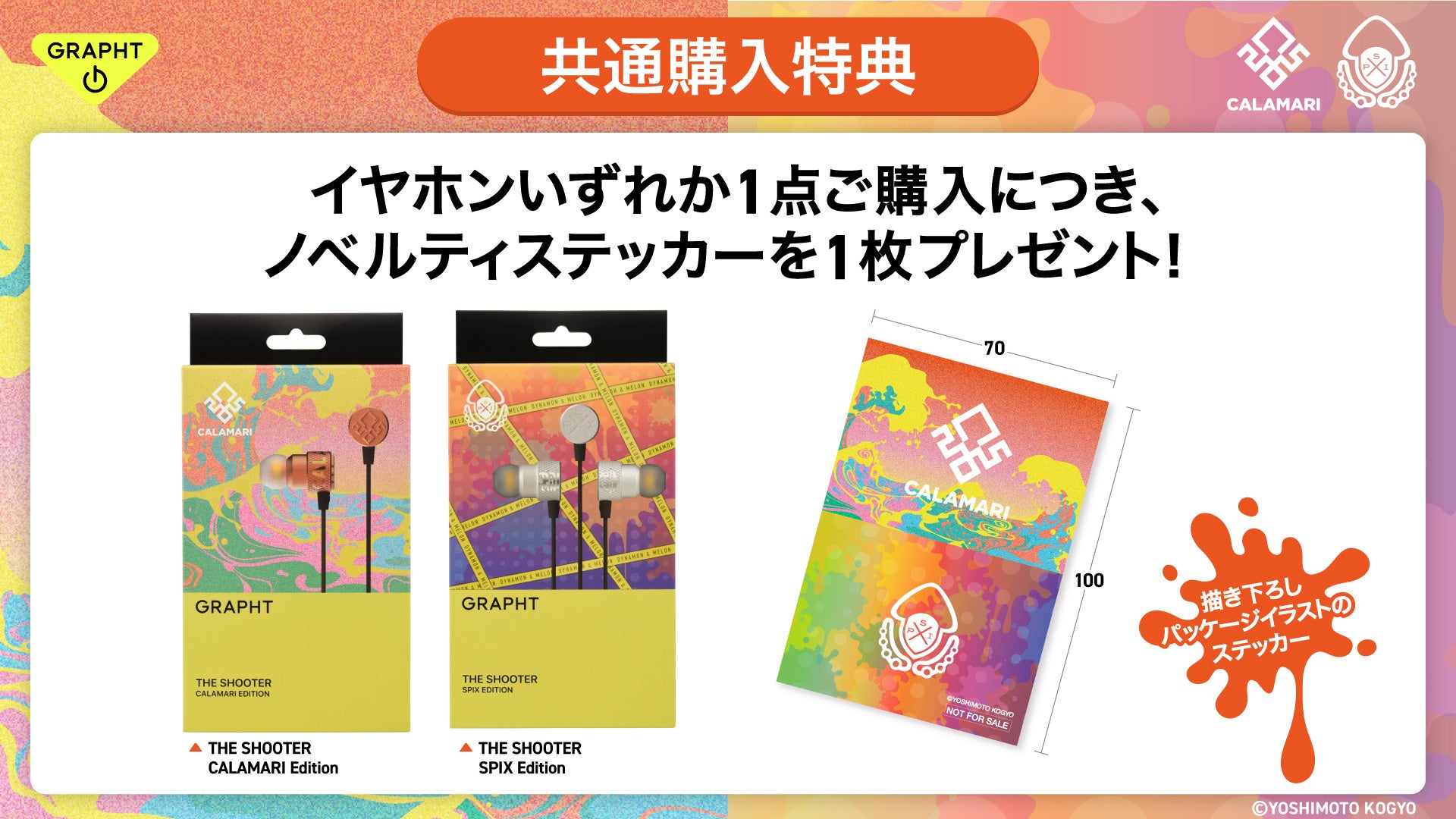 『THE SHOOTER CALAMARI Edition』および『THE SHOOTER SPIX Edition』をGRAPHT OFFICIAL STORE(ECサイト)または全国の家電量販店・PC専門店などでご購入いただいたお客様に、オリジナルのステッカーを1枚プレゼントいたします。