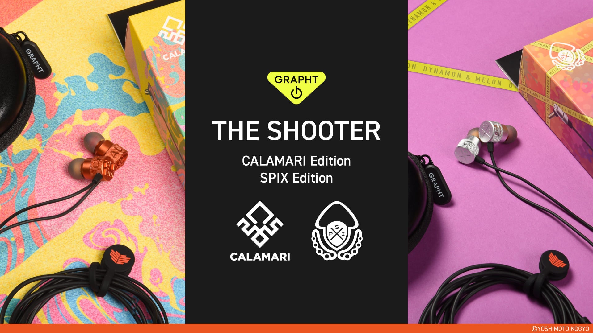 クリエイターとコミュニティの新たな関係性を創っていく『Team GRAPHT』は、この度、吉本興業株式会社が運営するプロゲーミングチーム「よしもとゲーミング」とコラボレーションした有線イヤホン『THE SHOOTER CALAMARI Edition』および『THE SHOOTER SPIX Edition』をリリースいたします。
