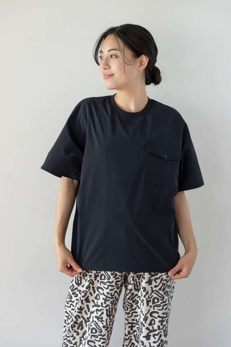 通気性・吸水速乾性に優れ、袖が短めでありながらも、腕がほっそり見えるキレイめなデザインが特徴です。