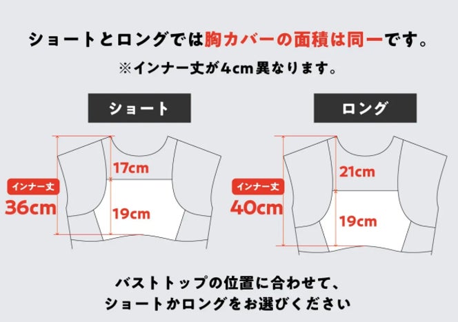 ブランドの成長とともに、「体型に合わなかった」「カバー範囲が狭かった」といったユーザーからの率直な声が寄せられました。これらの意見をもとに開発を進めたのが、全く新しい胸パットです。ランジェリーで使用される肌あたりの柔らかい専用素材(ウレタンパッド)に凸凹感のある裏地をプレスし、厚さわずか5ミりの1枚の胸パットが完成しました。曲線形状のパッドが胸をやさしく包み込むとともに、凹凸感のあるワッフル型の裏地がしっかりとバストトップをカバーしています。従来のブラキャミはップ型がメインですが、動いた際にずれやすかったり、サイズ選びが難しいといったデメリットもあったため、no-buではカップを使用しないことにより、体型にやさしくフィットするような設計にしています。また、胸カバーはショート(36cm)とロング(40cm)の2タイプをご用意し、お客様の体型に合わせてお選びいただけます。ブラジャーを着けなくても自然な美しいラインを作りながら、リラックスタイムを快適にお過ごしいただけるよう設計されています。