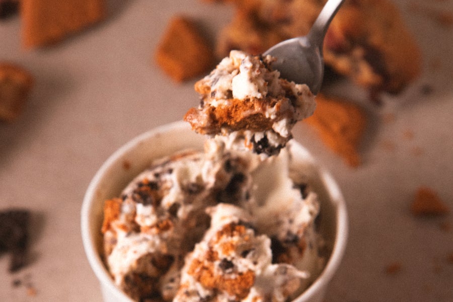 これは“アイスの中にクッキーを入れた”のではなく、「クッキーを最高においしく味わうために開発されたアイス」。ザクザクゴロゴロ食感と風味を活かしながら、アイスのなめらかさと溶け合うことで、これまでにないリッチな味わいに。
