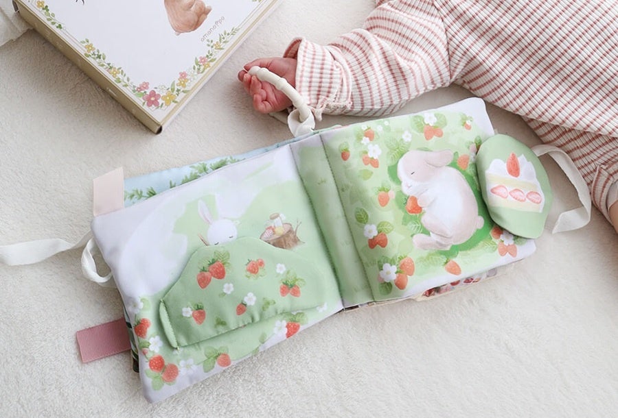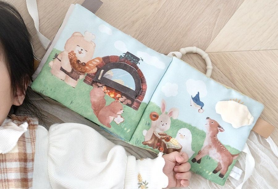 ふかふかのパンや雲、かくれんぼする動物たちなど、赤ちゃんの「発見したい気持ち」を刺激する工夫が満載。