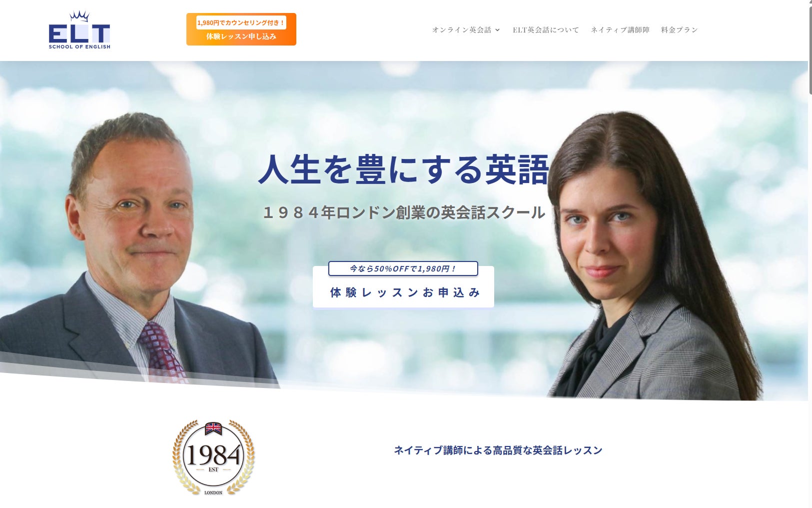 ELT英会話は1984年創立のロンドン発祥の英会話スクールです。オックスフォード大学やケンブリッジ大学など海外名門大学に多くの合格実績を持ち、上級者向けの高品質なレッスンを提供しています。