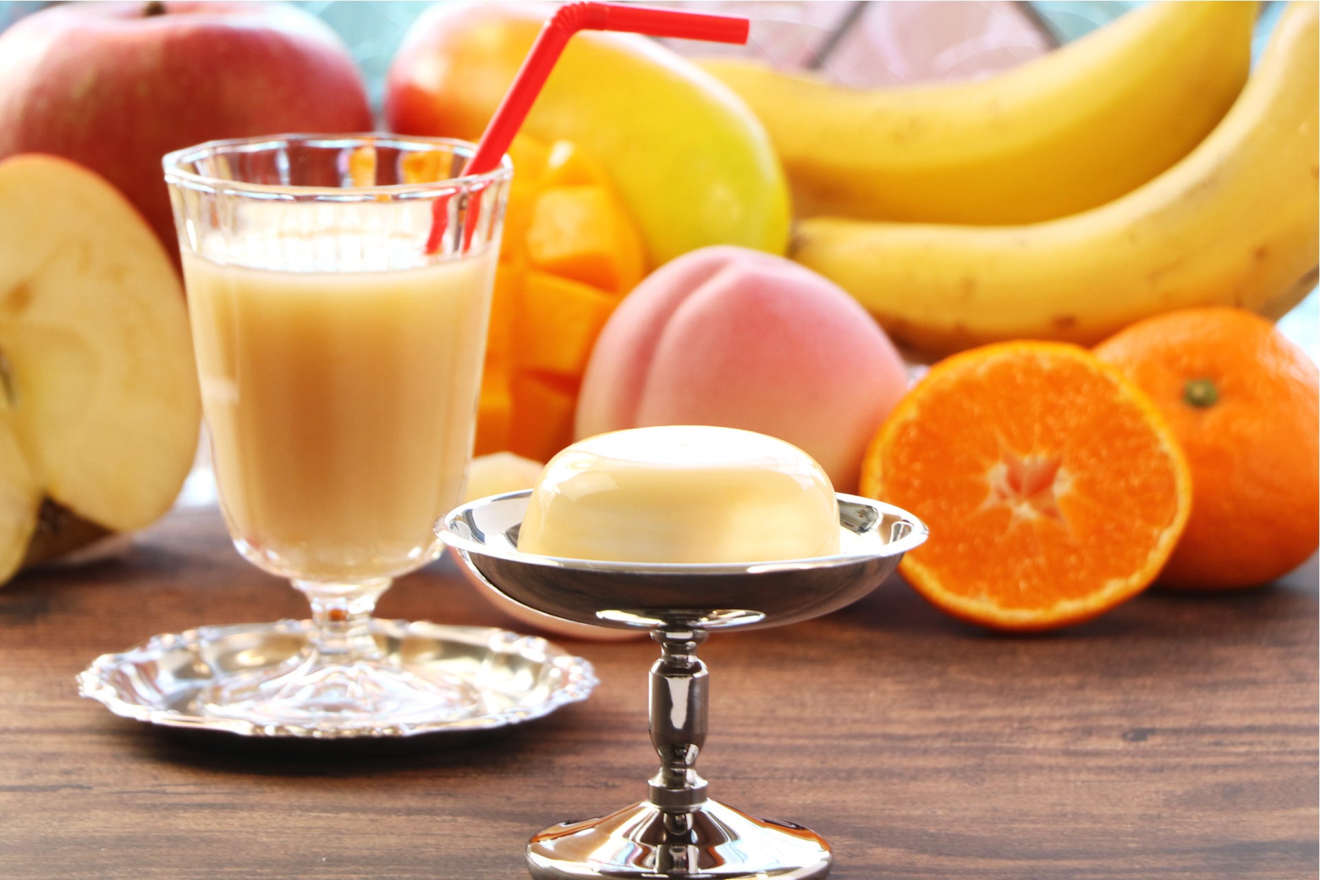 その濃厚なミックスジュースの味わいを、なめらかでとろけるような食感のプリンで表現しました。