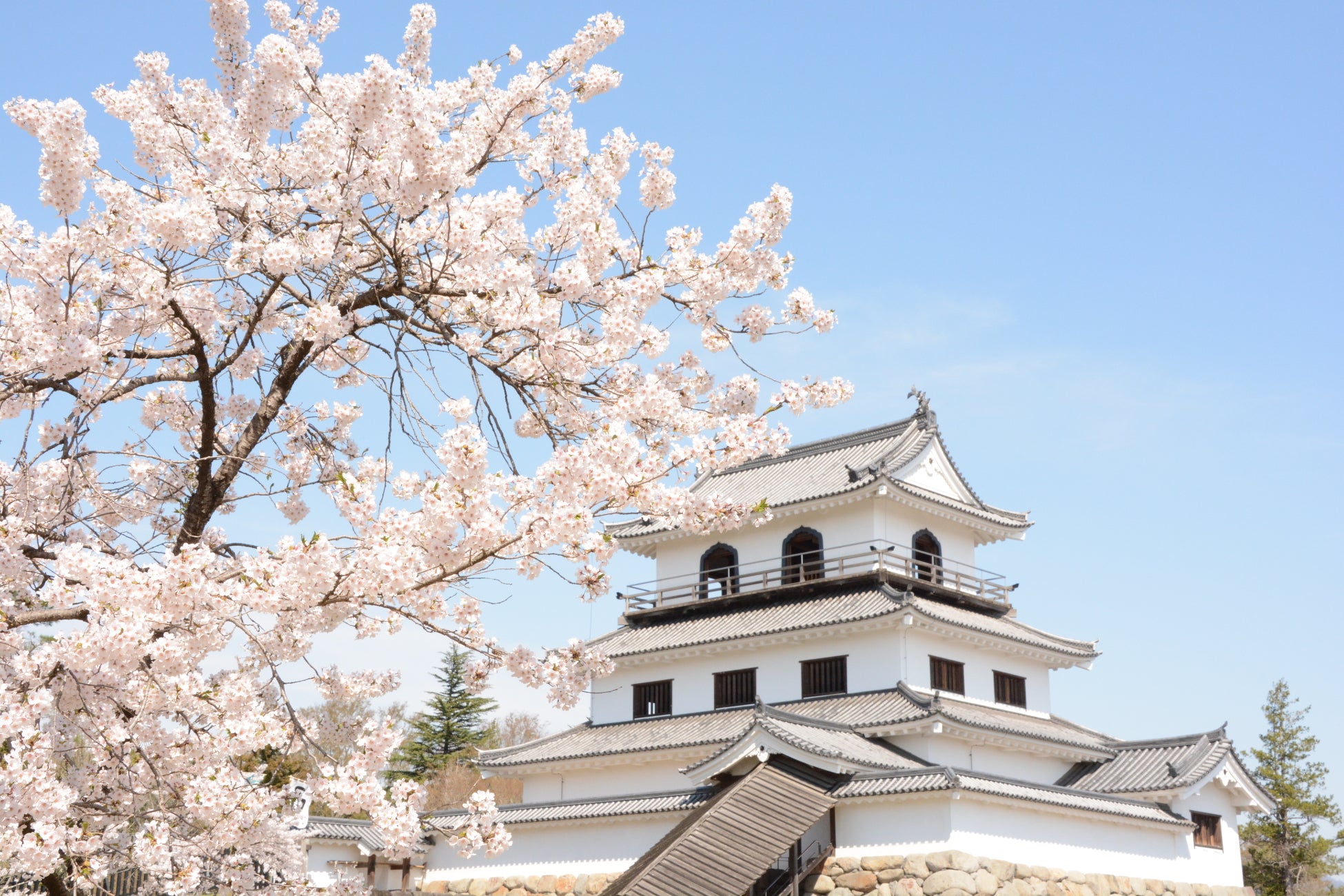 伊達家の重臣・片倉小十郎景綱の居城として知られ、1995年に木造で復元された歴史的な城。春になると、城を囲む益岡公園に約200本のソメイヨシノやシダレザクラが咲き誇り、城と桜が織りなす美しい風景が訪れる人々を魅了しています。3月下旬から4月中旬にかけて開催される「白石城桜まつり」の期間、日没から21時までぼんぼりによるライトアップが行われ、幻想的な夜桜とライトアップされた白石城の競演を楽しむことができます。