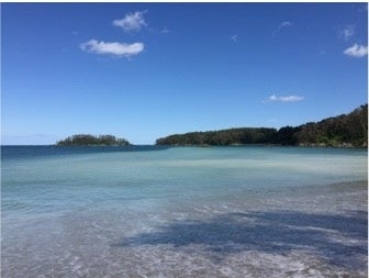 その美しさから「緑の真珠」とも呼ばれ、多くの自然が残されている気仙沼大島の東部に位置する海水浴場。半円形の美しい砂浜が特徴で、環境省選定の「快水浴場百選」で特選(全国2位)に入るなど、美しい景観と水質環境は高い評価を受けていました。白い砂浜と青い海、緑豊かな背景が織りなす風景は、まさに絵葉書のような美しさです。