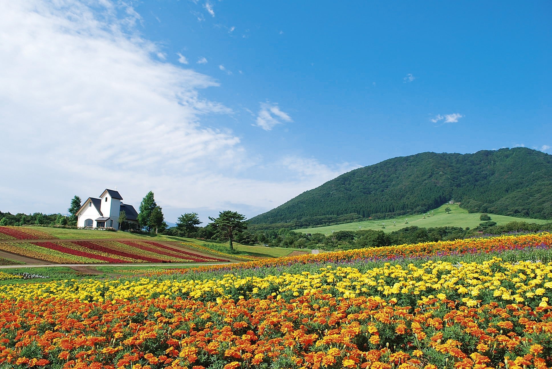 東京ドーム約32個分の敷地面積に、約400種類の植物が楽しめる東北最大級のガーデン。8つのテーマに分かれ、春はビオラや菜の花、夏はヒマワリ、秋はケイトウやサルビアなどが一面をカラフルに彩ります。