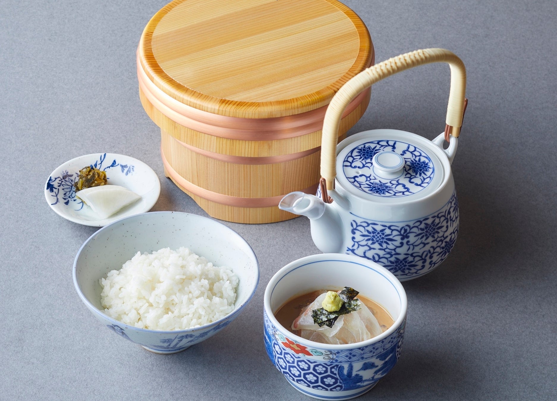 二膳目は残りの鯛の身とタレをご飯にのせ、お茶をかけ、お茶漬けとしてお召し上がりいただくと二度お楽しみいただけます。