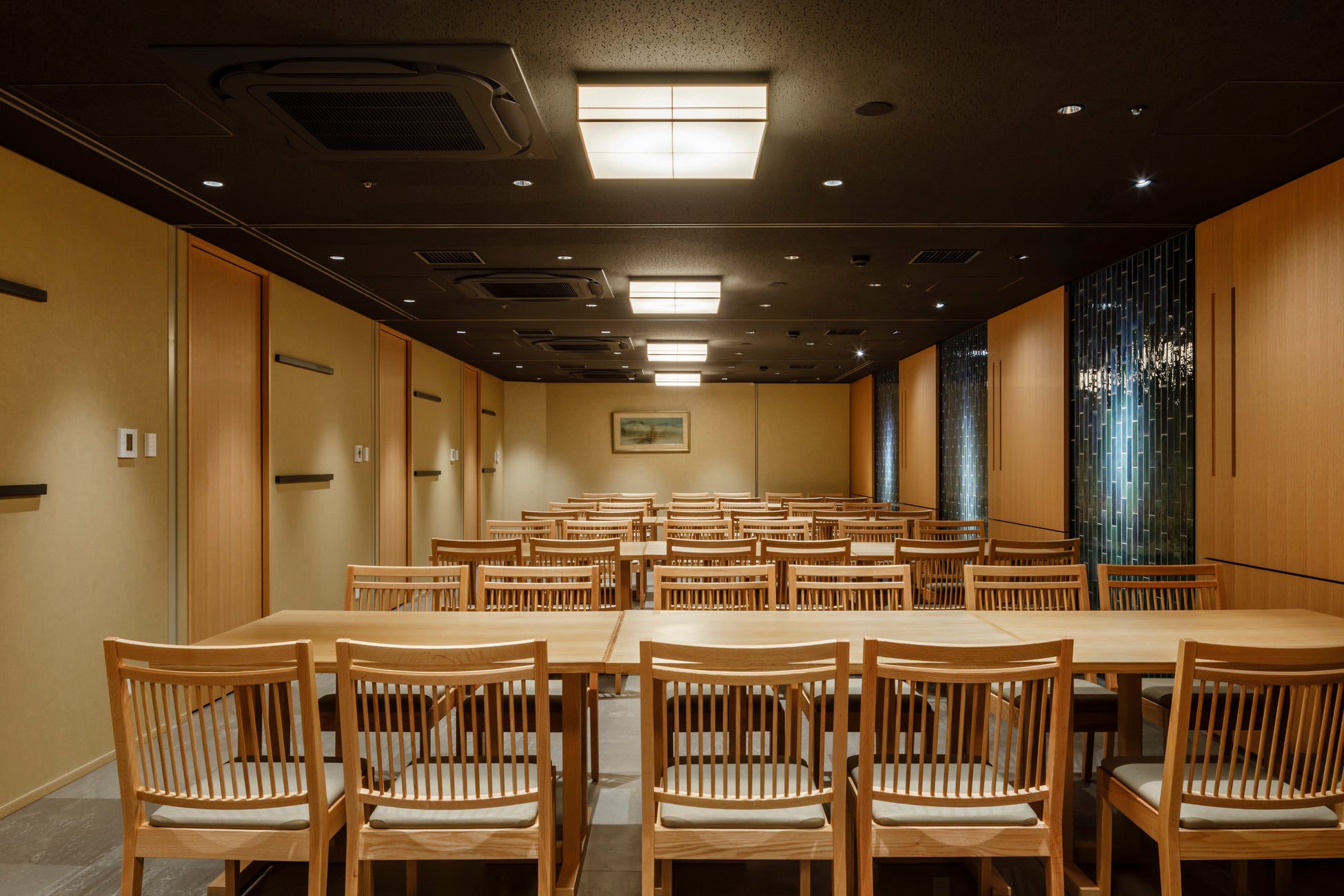 広さを生かした開放的な大広間は、最大60名様に対応可能。人数に応じて4分割にできる可動式となっています。和室タイプの個室を2部屋配置しています。