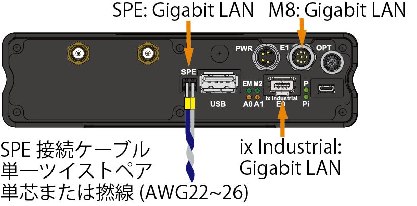 PL-R5は有線通信用にはシングルペアイーサネット(SPE)を含むギガビットLAN 3ポート*を有し、オプションで無線(Wi-Fi/Bluetooth)とLTEにも対応します。