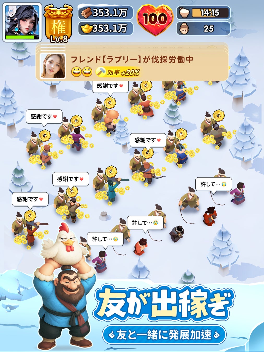 2024年に中国でリリースされて以来、本作は大きな話題を呼び、アクティブユーザー数はすでに1000万人を突破。長期間にわたりゲーム売上ランキングの上位をキープしています。氷雪をテーマにしたユニークな世界観や、ユーモアあふれる「民心スキル」(プレイヤーは民心スキルが発動できる。例えば「真夜中の鶏鳴」は“夜間にニワトリを鳴かせて住民を深夜労働させる”など)、気軽に楽しめるソーシャル要素(フレンドを住民として招待し、働かせることが可能)、そして白熱の競馬レースなど多彩なミニゲームが特徴で、シミュレーション経営やまったり育成を好む幅広い層のプレイヤーから高く支持されています。