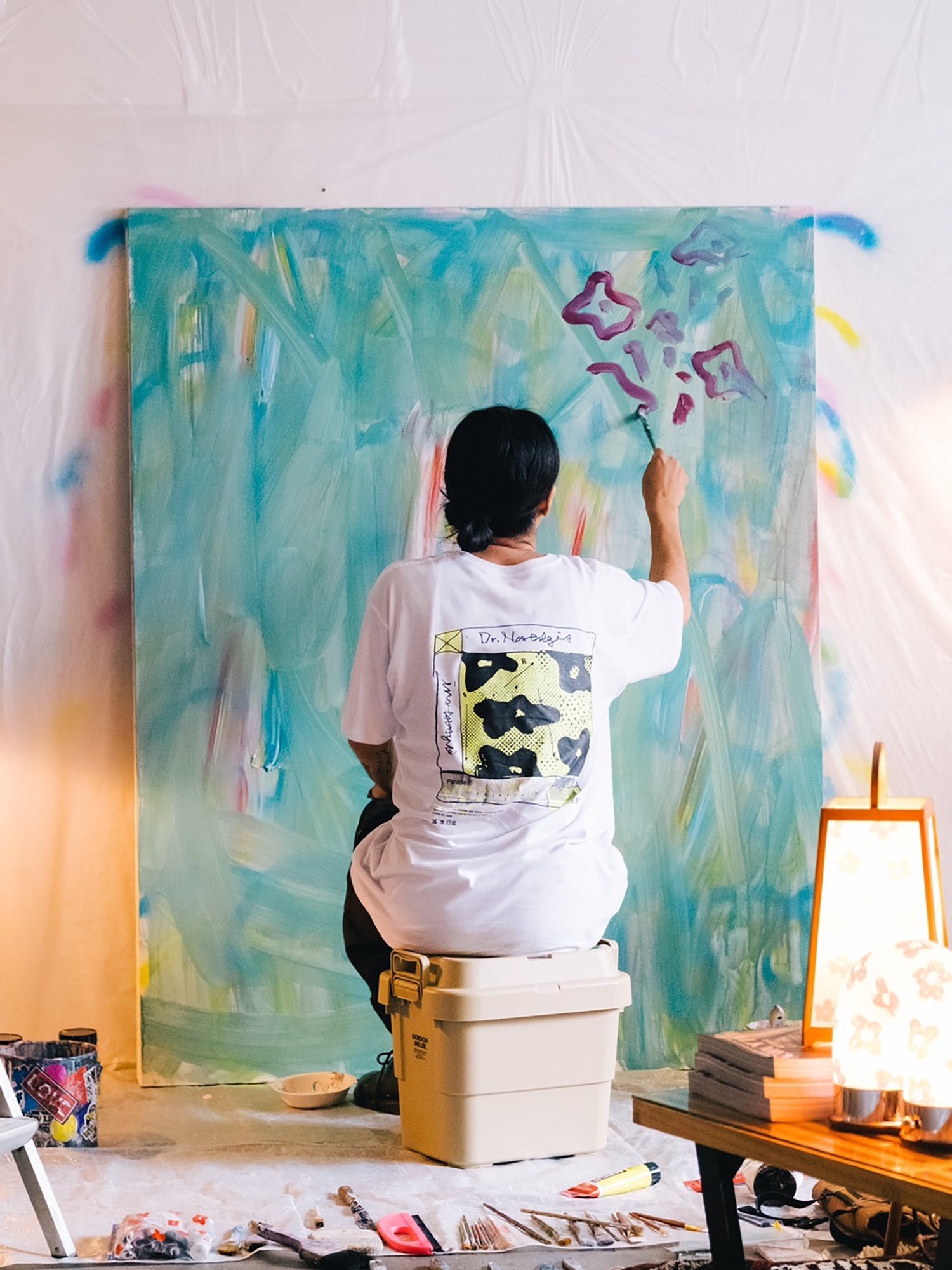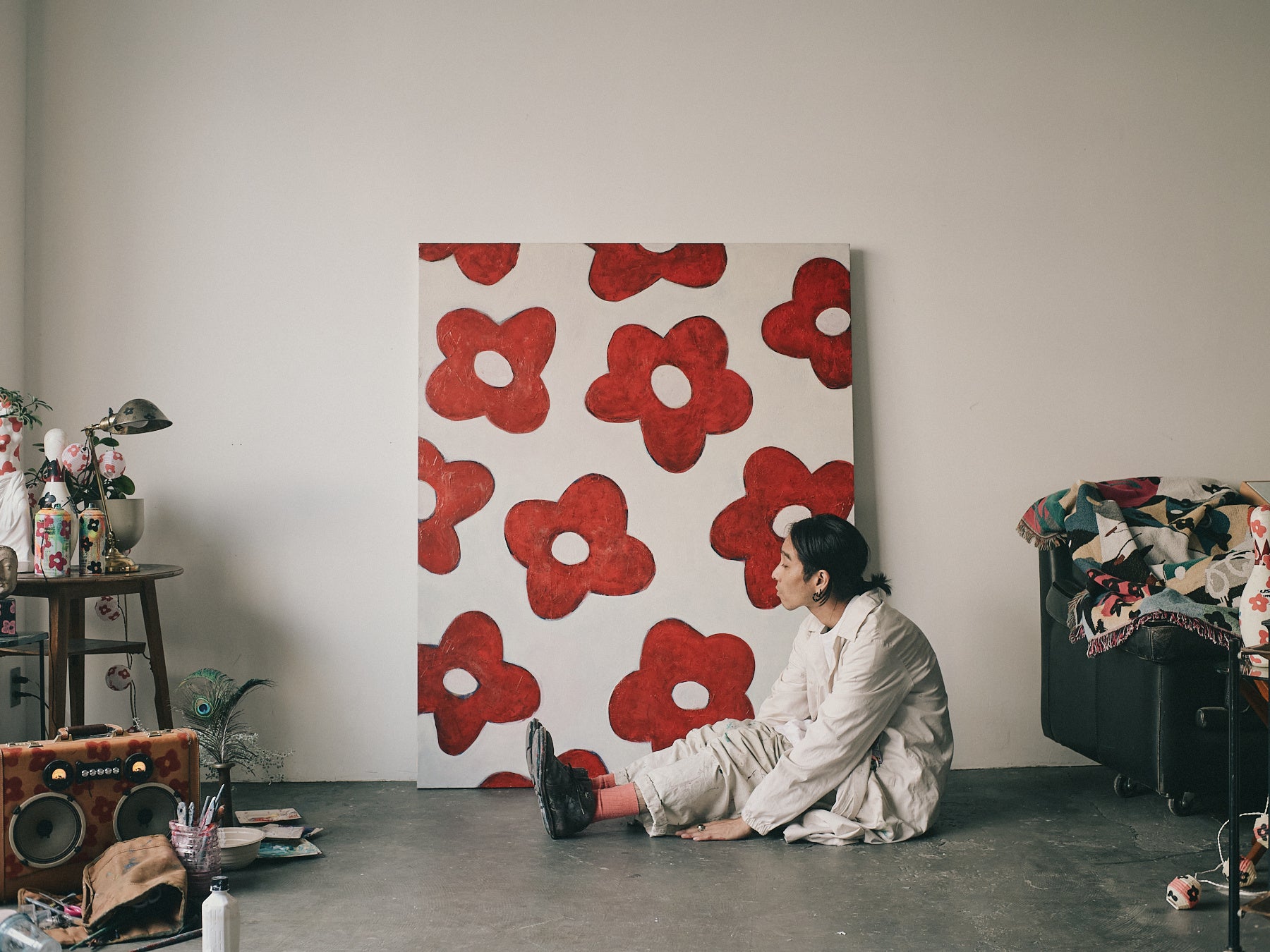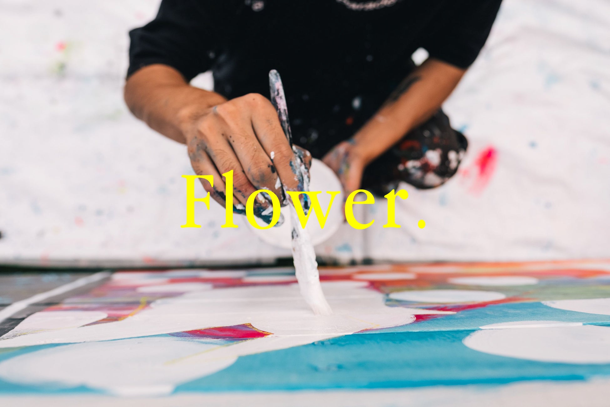 花を描くとき、僕はそれを“人”だと思って描いています。一輪一輪に、それぞれの個性があって、それでも不思議と、集まると調和が生まれる。まるで人の集まり――街や商店街のようだなと思うんです。