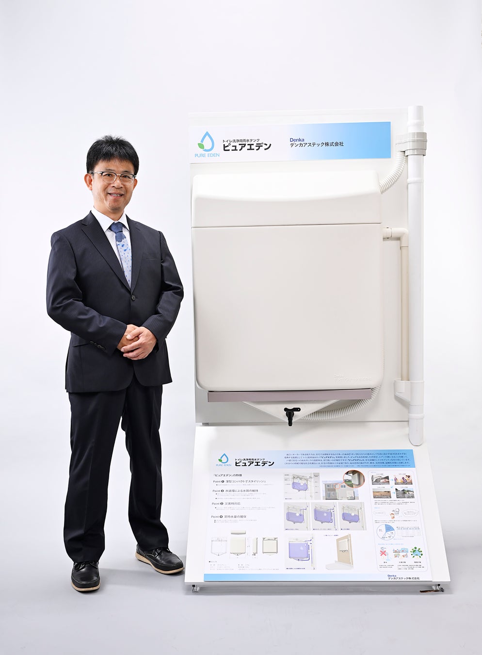 デンカアステック株式会社は、旧東洋化学時代から60年以上にわたり、雨樋の開発・製造に携わってきた、雨どいの老舗企業。国内で唯一、樹脂製・金属製の両方の雨樋を手がけるメーカーとして、多様な建築ニーズに応え続けている。こうした長年の実績に裏打ちされた「雨水の取り回し」に関するノウハウを活かし、現在は“捨てる水”から“活かす水”へと視点を転換。災害時や水不足の時代において、雨水を「貯めて使う」「制御して守る」といった“水循環の新たな専門企業”として雨水をインフラ資源へと昇華させる革新に挑戦中。