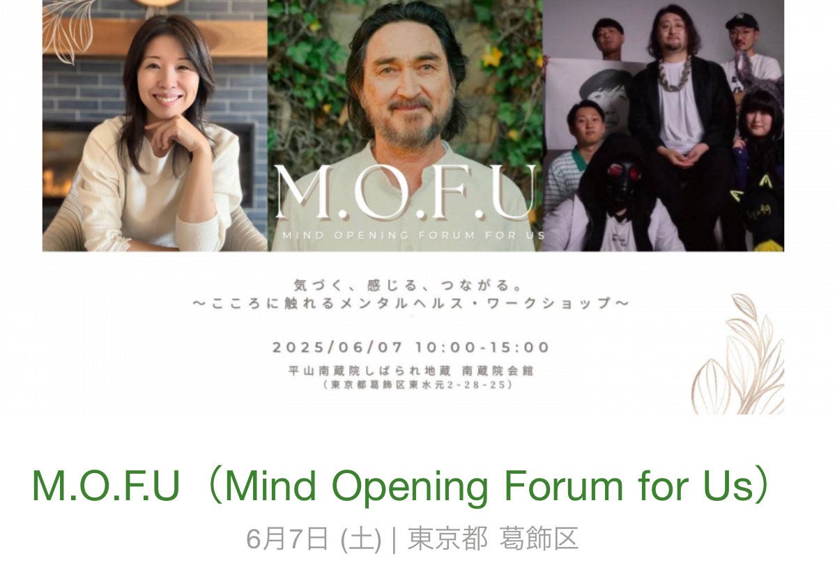 2025年6月7日(土)、東京都葛飾区にある「業平山南蔵院 南蔵院会館」にて、メンタルヘルス啓発イベント『M.O.F.U(Mind Opening Forum for Us)〜気づく、感じる、つながる。こころに触れるメンタルヘルス・ワークショップ〜』が開催されます。主催は特定非営利活動法人メンタルヘルス環境向上プロジェクト(MHEC), Heartfulness Association、Doctor in da House。共催はまどかプロジェクト。