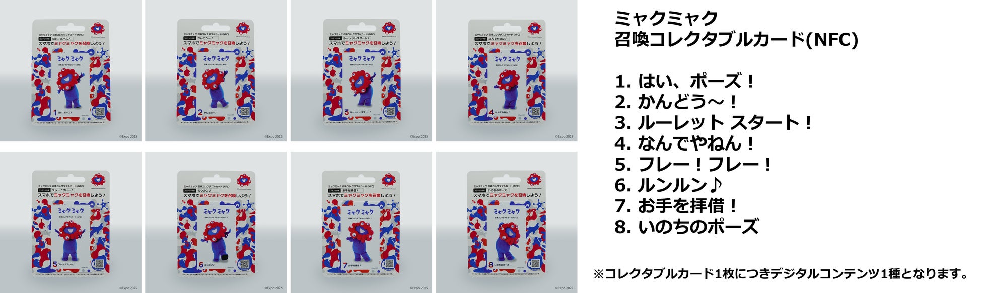 連日ミャクミャクグリーティングが行列、公式ライセンス商品も完売が相次ぐなど「2025年日本国際博覧会(大阪・関西万博)」公式キャラクター「ミャクミャク」フィーバーが日本を席巻中。そのミャクミャクといつでもどこでも出会える新商品3種「アクリルスマホスタンド」「コレクタブルカード」「ダウンロードカード」を2025年6月5日(木)より順次販売開始いたします。