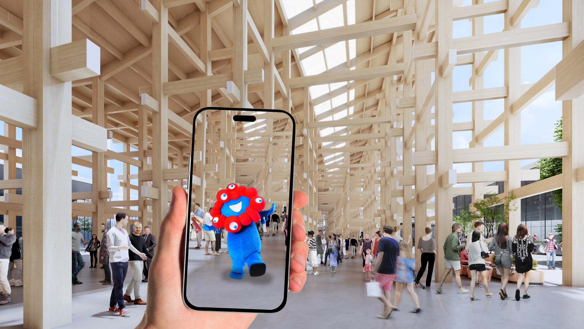 大人気のミャクミャクが高性能なキャプチャ技術で3D化!どこでもリアルなミャクミャクを召喚し「ミャクミャクとダンスを一緒に踊る」「ミャクミャクと一緒に記念撮影」ができる