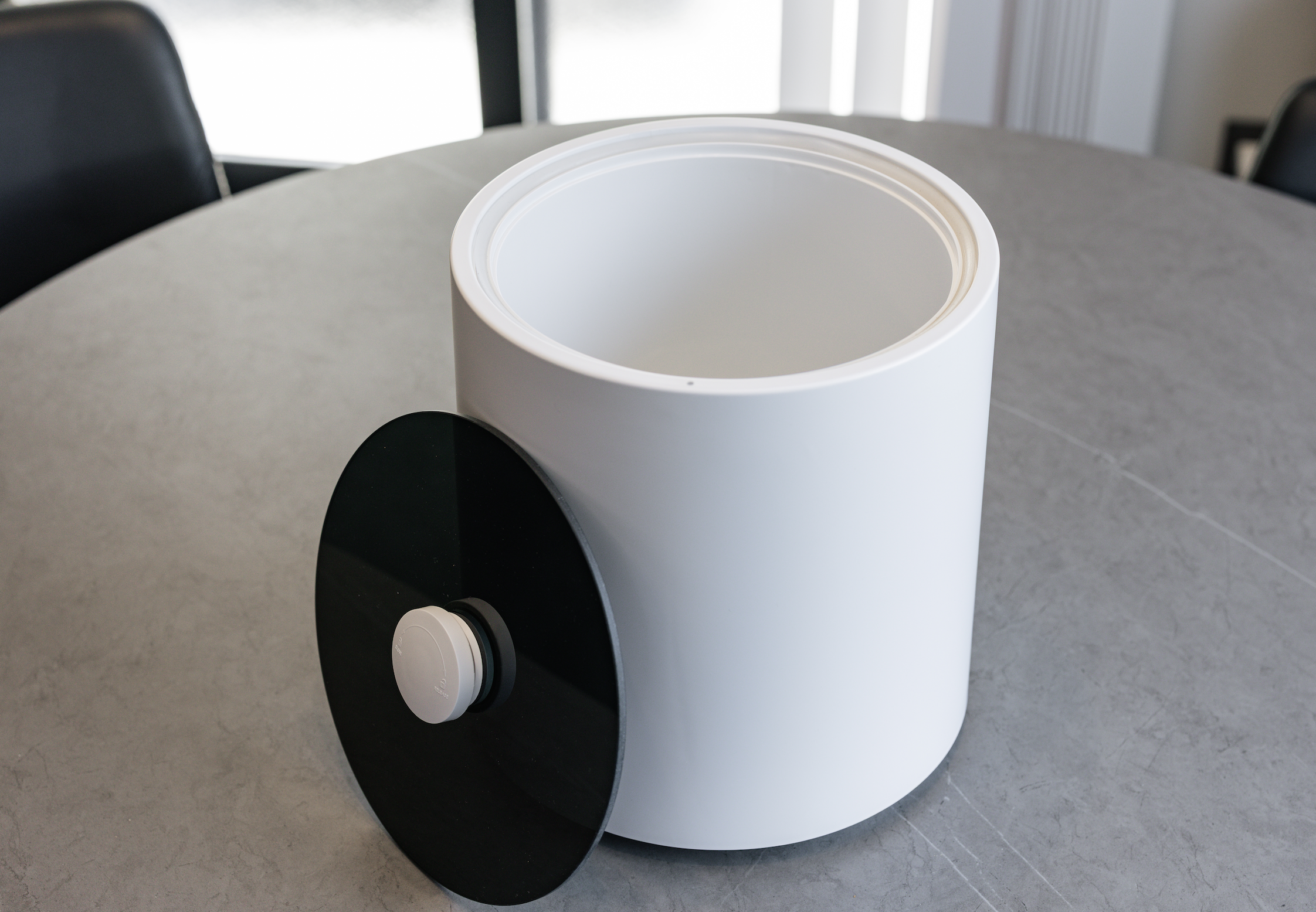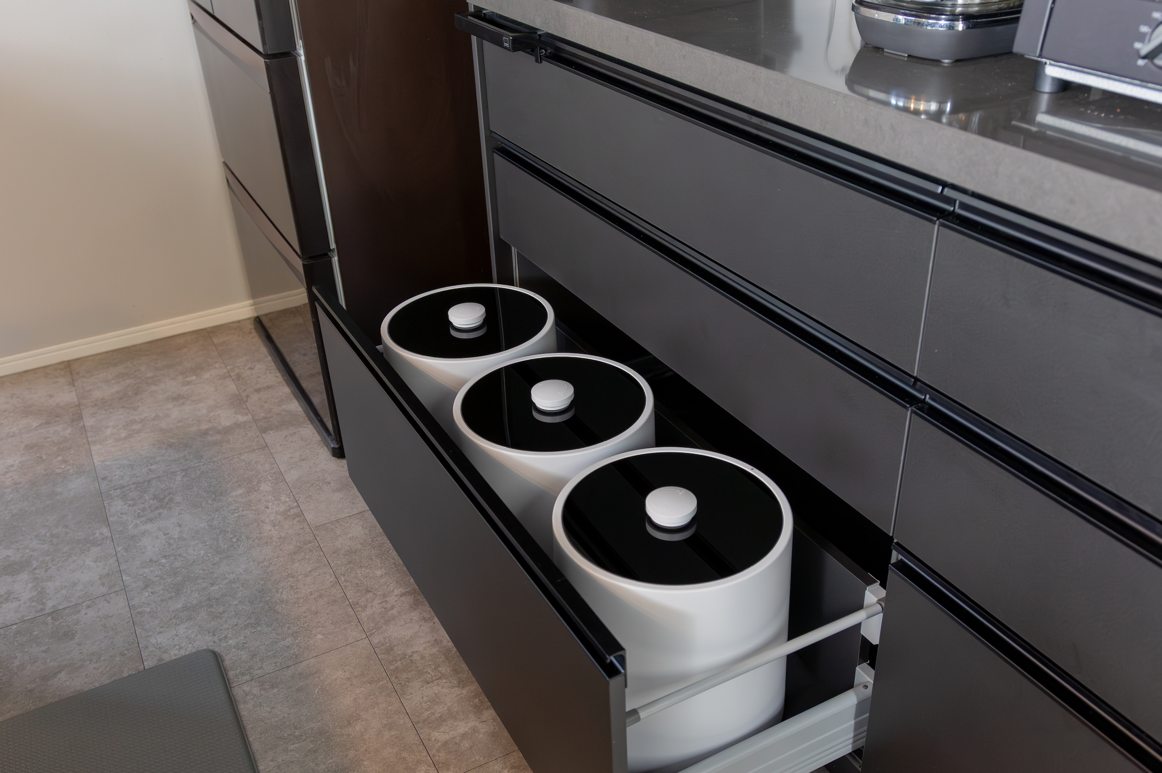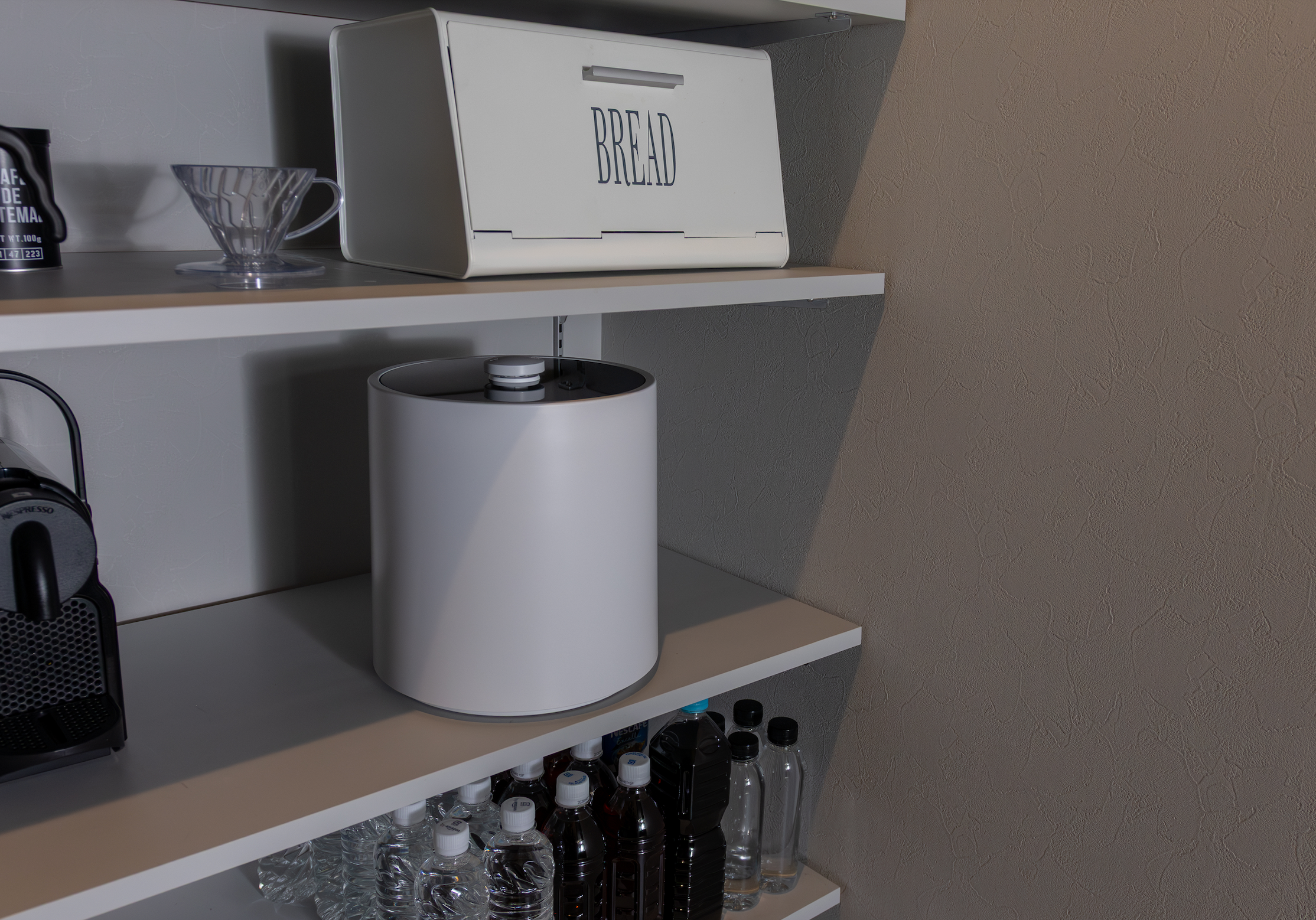 5kgの米や、袋ごと入る乾物・パスタ・コーヒー豆などをすっきり収納。キッチン収納棚やパントリーにも収まりやすいシンプルな円筒デザインで、インテリアに馴染みやすく、暮らしの美観も守ります。