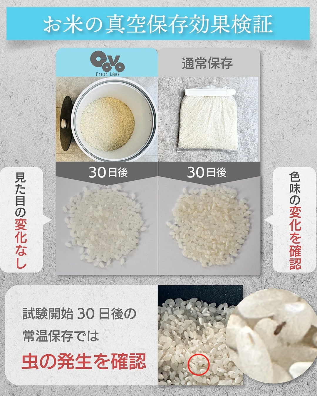 お米の天敵である湿気と虫を、真空密閉でしっかりガード。