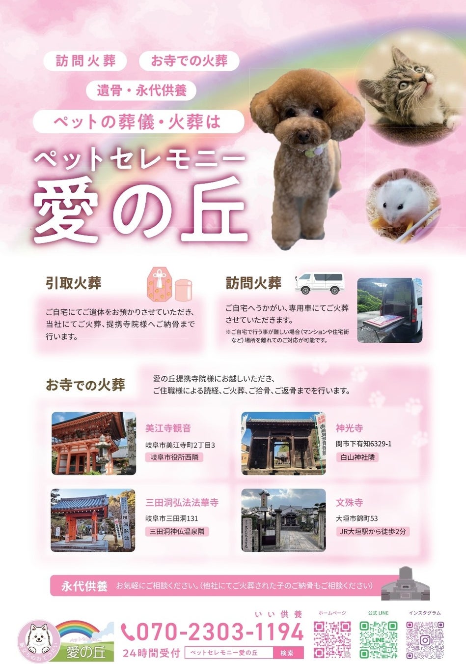 (2025年4月自社調べ) 岐阜市初の複数の提携寺院で行えるペット葬儀プラン(読経あり)
