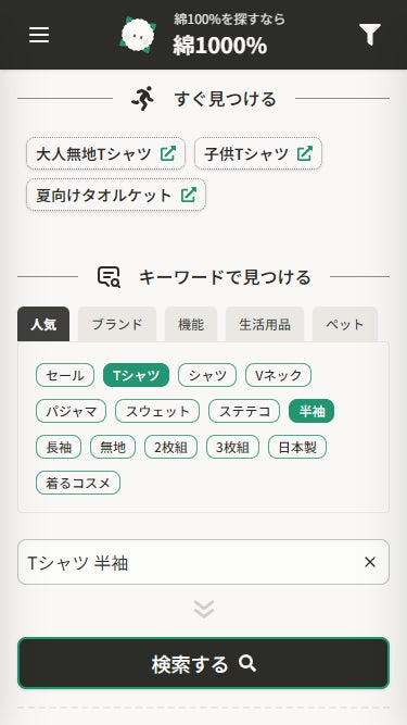 綿100%を探したい!個人開発の検索サービス「綿1000%」