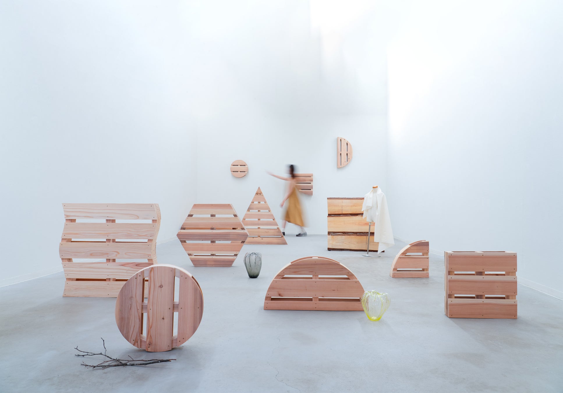 日本初・円形パレットを空間什器に。国産材木製パレットブランド「w/P」をリリース