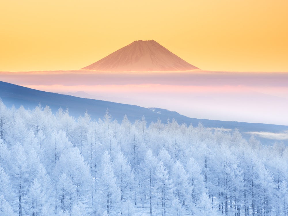 本写真展では富士山そのものだけでなく、そこに広がる美しい自然や富士山の関連する信仰の風景にも着目して取り上げています。裾野や麓に広がる豊かな自然や富士山信仰の遺構、富士山と自然の色彩美などにもぜひご注目ください。