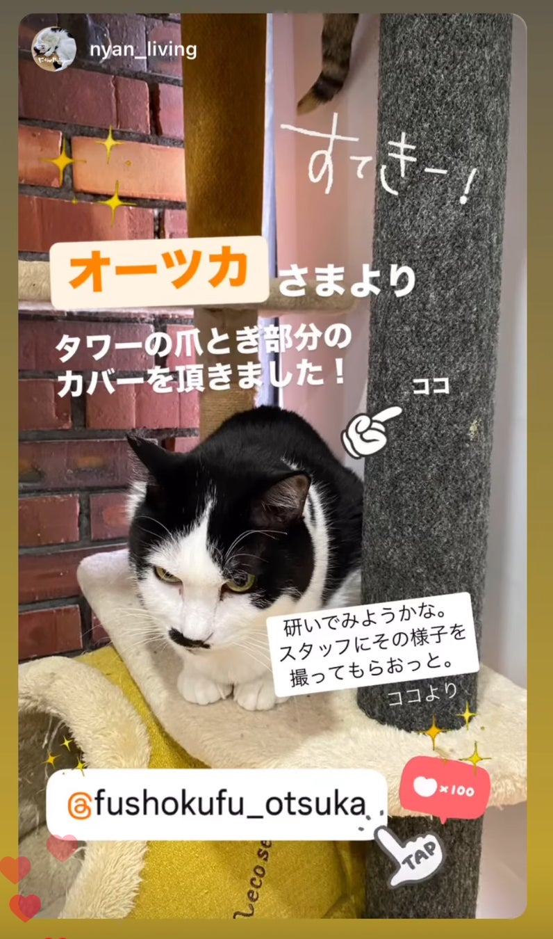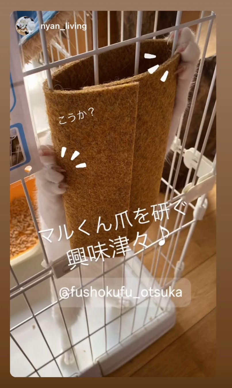 他のネコちゃんのご意見も頂きたいと考え、高山市で保護猫活動をされている「にゃんliving」様に、爪とぎロンマットの使用テストをお願いしました。