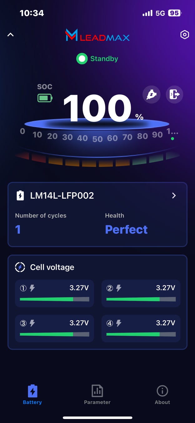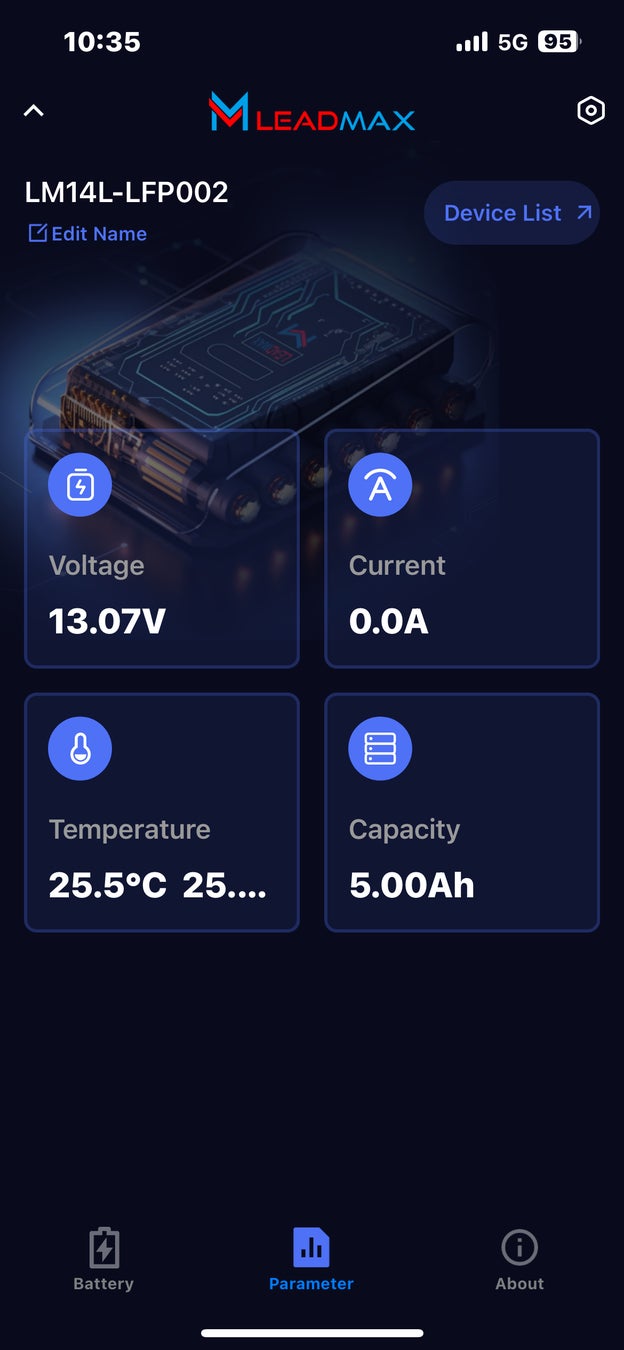 てLeadMax専用アプリケーションからバッテリー状態をモニタリングする事ができます。