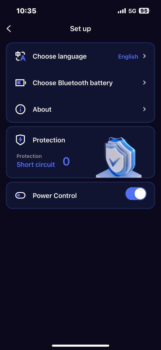 ※画面右上の設定マークから入り、Power Control(パワーコントロール)スイッチでON&OFFの作業が行えます。