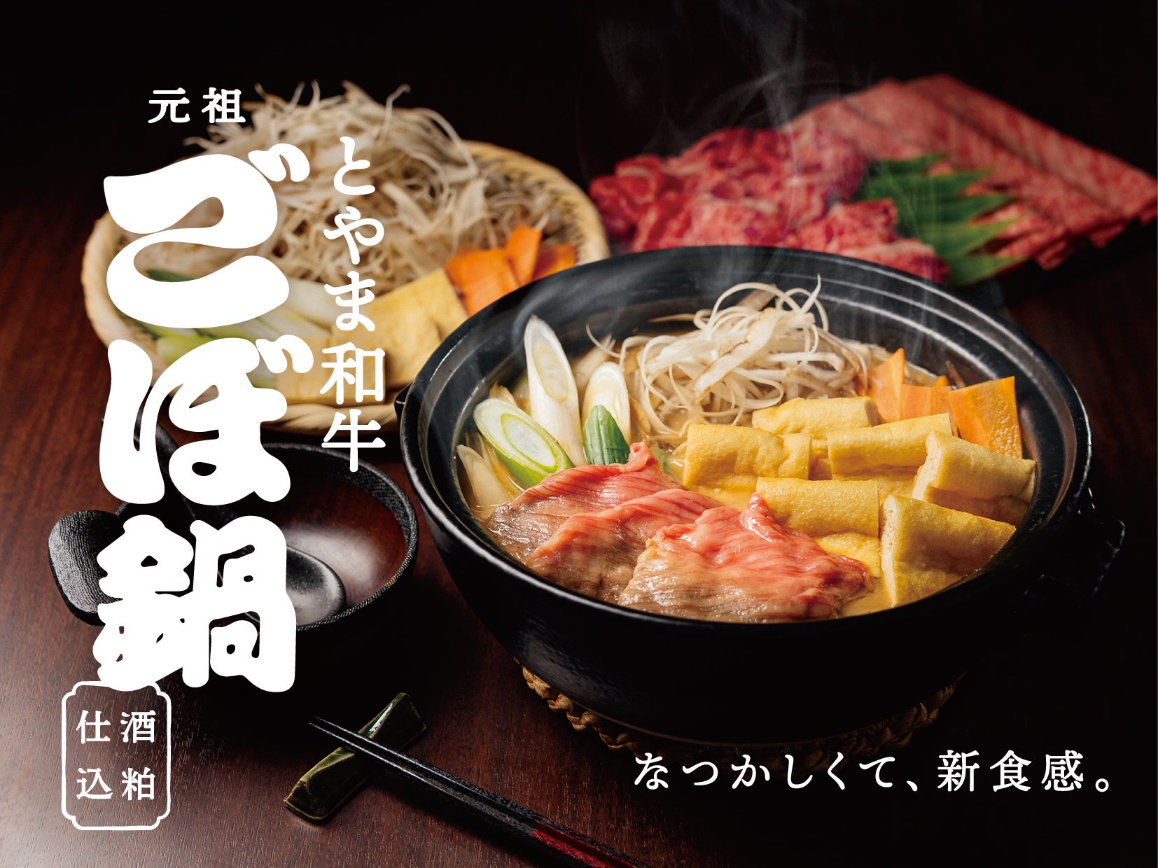 「とやま和牛 ごぼ鍋」は、和牛・ごぼう・酒粕が融合した“ありそうでなかった”鍋料理となっております。